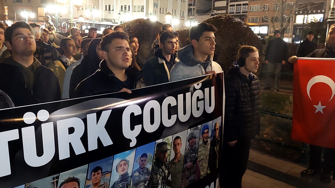 Ulus Anıtı önünde 19.00 sularında toplanan kalabalık burada dev bir Türk bayrağı açtı. Akabinde parti temsilcisi yerel televizyona, şehitler ile ilgili kısa bir açıklamada bulundu. Bu açıklama tamamlandıktan sonra kalabalık grup teröre lanet yağdıran sloganlar eşliğinde İsmet İnönü caddesine doğru ilerledi. Emniyetin nezaretinde düzenlenen yürüyüşte teröre lanet sloganlarının yanında şehitleri anmaya yönelik sloganlar da atıldı.